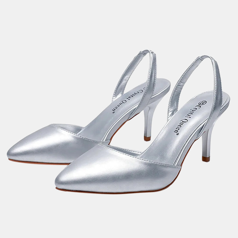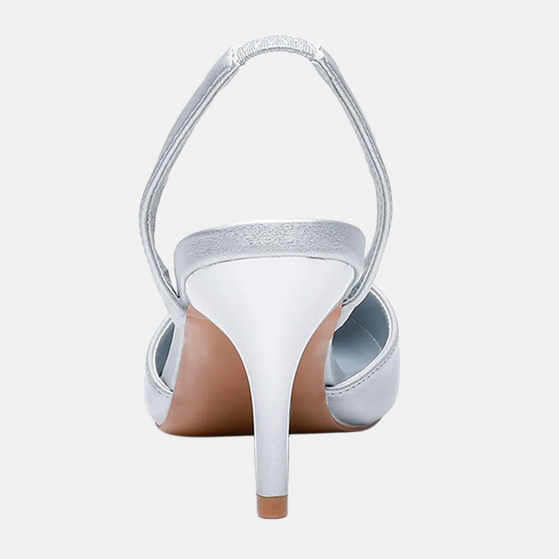 Escarpins Argentés à Talon Moyen et Bride Arrière