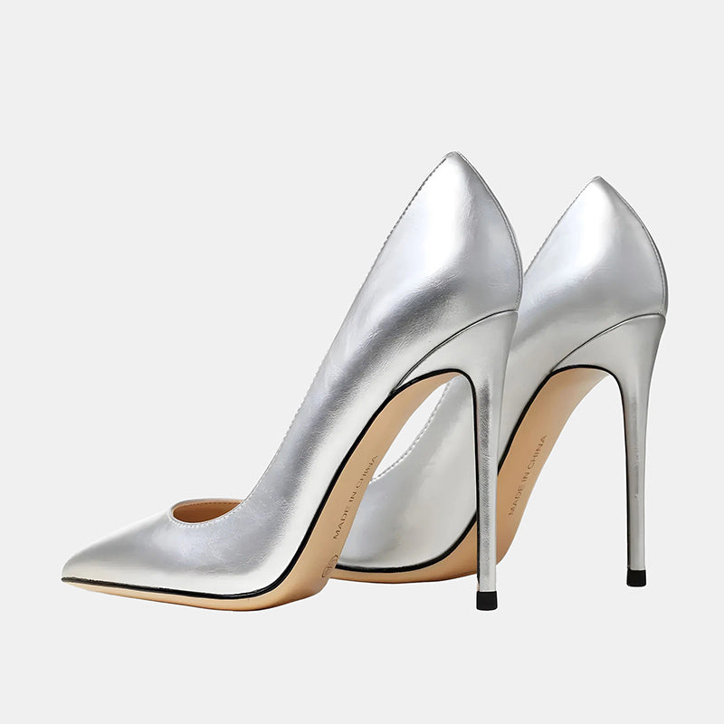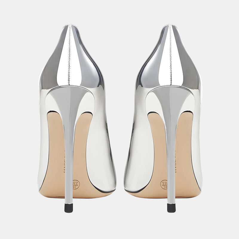Escarpins argentés à talon aiguille : Élégance moderne