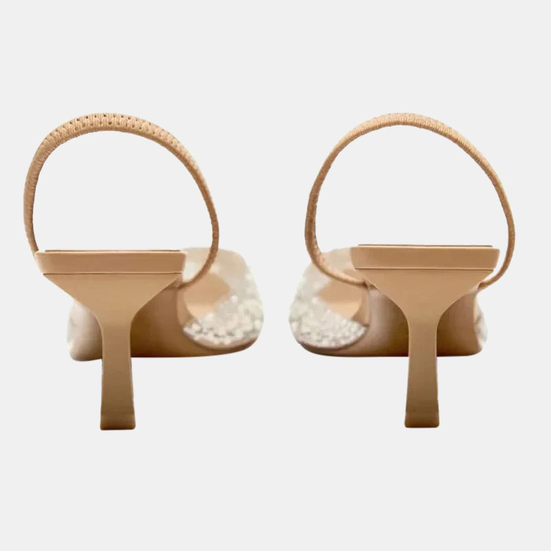 Escarpins beiges | Talons moyens ornés de perles et cristaux scintillants