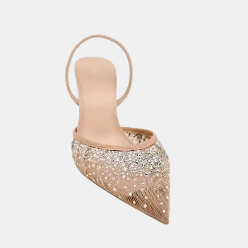 Ces escarpins beiges scintillants avec cristaux, dotés d’un design chic et confortable, sauront rehausser vos tenues de soirée et vous faire briller lors de toutes vos occasions spéciales.