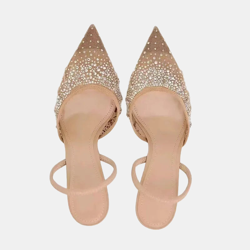 Escarpins beiges | Talons aiguilles avec une finition scintillante élégante