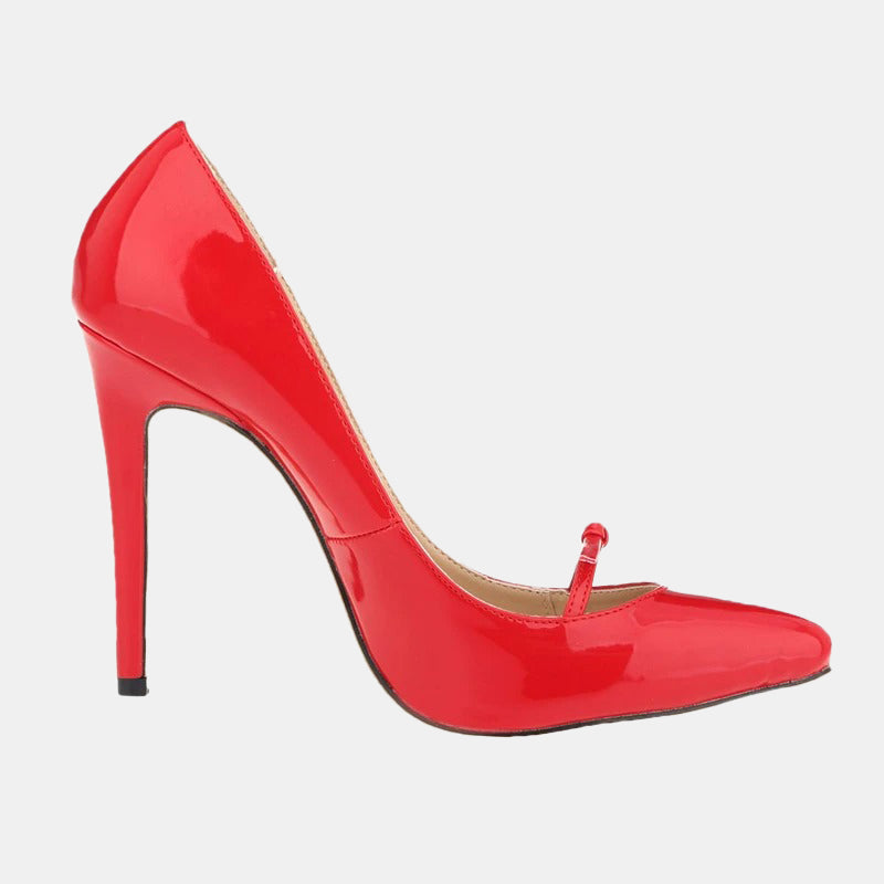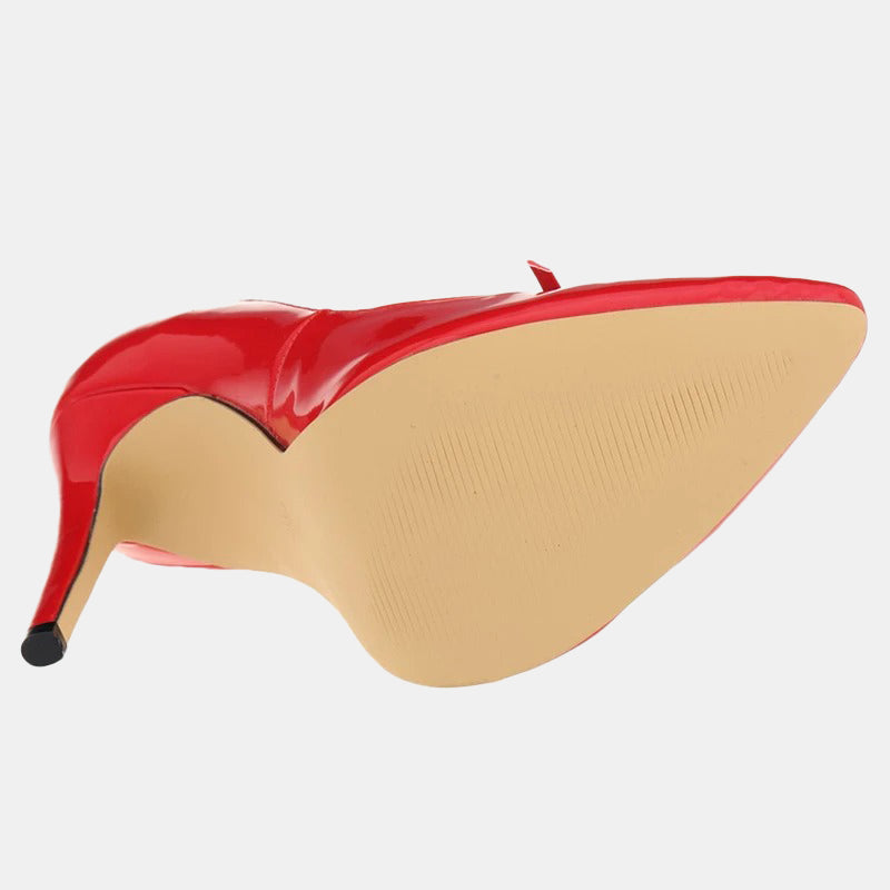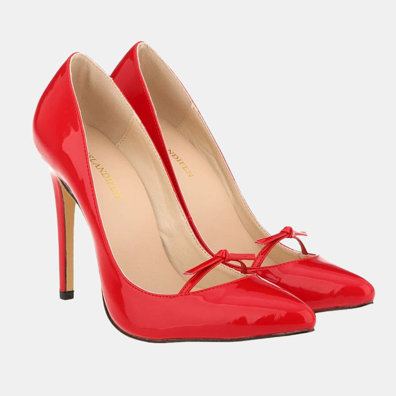 Escarpins rouges | Talon haut verni avec petit nœud élégant et semelle rembourrée