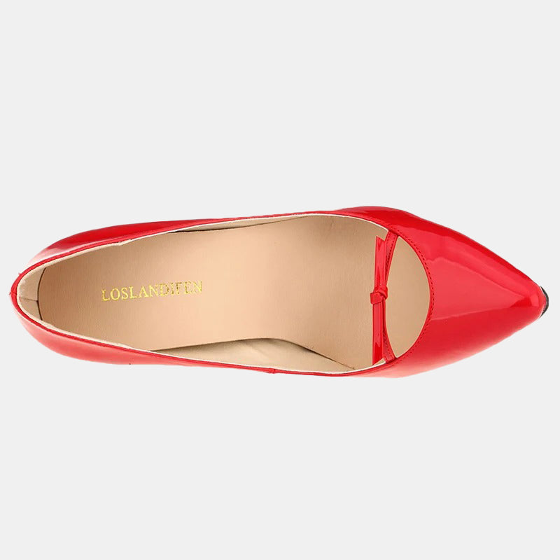 Ces escarpins rouges vernis sont parfaits pour celles qui recherchent un mélange de glamour et d'élégance, idéals pour des soirées habillées ou des rendez-vous spéciaux.